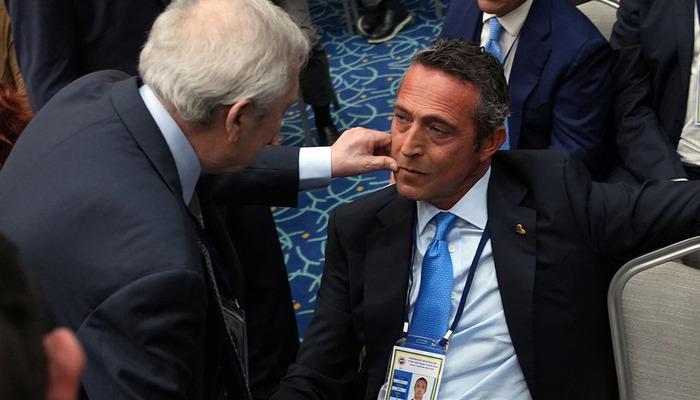 Eski başkanlardan Aziz Yıldırım, kürsüdeki konuşmasının ardından Başkan Sadettin Saran ve yönetimiyle el sıkışırken, yerini alınca Ali Koç’un yanına gitti ve ikili arasında ilginç bir diyalog yaşandı.